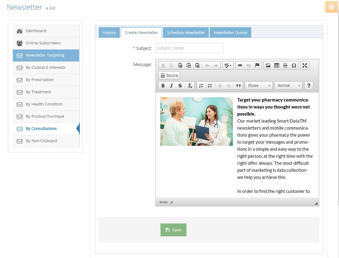 La nostra piattaforma di marketing online specializzata in prescrizione privata e medici online offre alla tua azienda farmaceutica la possibilità di inviare newsletter ultra-mirate, messaggi di testo SMS e buoni / coupon elettronici secondo-